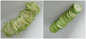 将西葫芦洗净,首先切成薄片,然后切成细丝