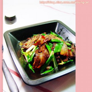 放入是豆瓣酱二分之一量的甜面酱,快速炒匀后,再放入青蒜,一断生即可起锅