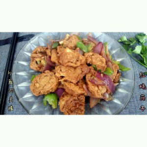 茄子削皮后改切寸方块,将面粉、生粉、鸡蛋打入、再放些盐拌匀