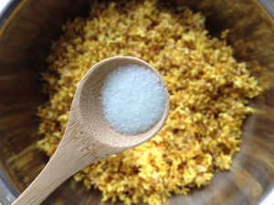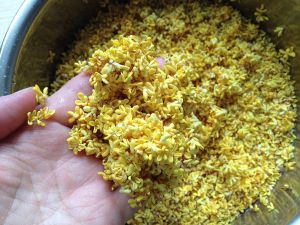 将摘来的新鲜桂花去除杂质和花梗(这是一个比较费工的活)
