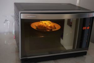 放入提前装水预热的蒸烤箱中层操作蒸功能180度18至20分钟