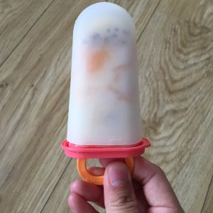 一块水果先放进模具里 然后加酸奶 酸奶的量把水果盖住就好 再加另外一种水果 然后震几下模具使酸奶和水果之间木有空气 再用酸奶盖住水果 依次加麦片 加酸奶 震几下 再加水果 加酸奶 直到模具八分满最后一层一定要是酸奶 最后插上冰棒盖子 放到冰箱冷冻三四个小时就可以享用美味了