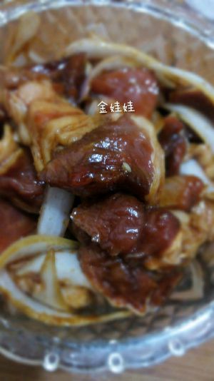 羊肉洗干净,料酒,生抽老抽,黑胡椒粉,盐洋葱都放进去腌制20分钟!