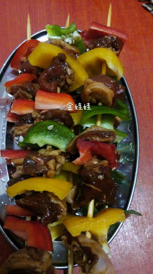 腌好穿成串,烤箱200度预热5分钟,上下火烤10分钟翻一下再烤10分钟,拿出来抹点油,撒上辣椒面,再烤5分钟,拿出来撒上孜然就可以吃了
