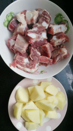 小排剁小段,土豆切三角块。