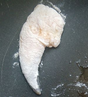 在面粉中滚一下,裹上薄薄的一层