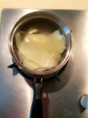 先煮柚子皮,煮大概15分钟放入柚子继续煮。