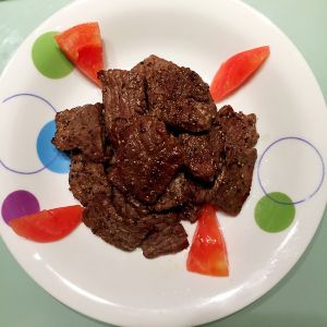 摆上番茄装盘,香喷喷的香煎小牛排就好啦!