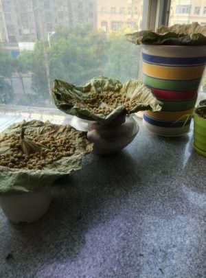 找密而透气的网蓝,菜篮,蒸锅均可,有簸箕最好,铺几层纸,铺上裹好的豆子,再盖上宣纸,蒸布等也行,盖上荷叶,荷叶也可以用蒸布,玉米皮,南瓜叶等取代,总之是起到“捂”豆子的作用,室内30℃左右,等上绿色霉菌即可