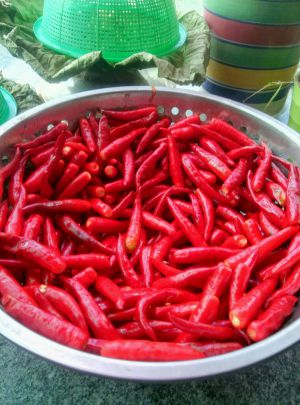 辣椒洗好晾干,一定不带生水的。可选辣的辣椒,也可不太辣的,市场有多种