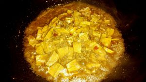 锅中放油,放水,再放豆腐块,(水刚刚盖过豆腐)加入调料生抽,酱油,豆瓣,沸腾后改中小火焖。