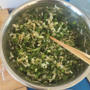 鸡蛋炒好后晾凉加入韭菜馅儿里