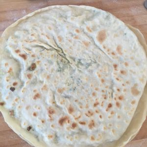 铺好馅儿把另一张饼铺上 边缘用手摁一下