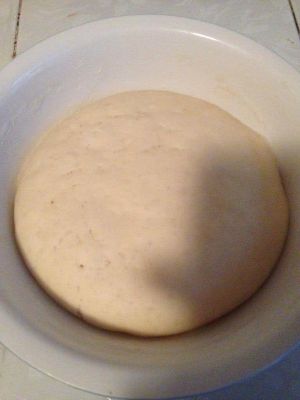 擀成一个中间薄,四周厚的圆饼