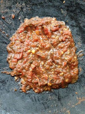 熬到番茄酱水分逐渐减少,呈现出很干的酱料状态关火,等酱冷却待用。