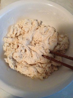 加入适量的清水,用筷子将面粉和成絮状。此配方中的水不要一次性倒入,分次倒入后用筷子搅拌,直到面粉成为絮状,无散干面粉为止。不同面粉的吸水性不同,因此水量多少有所变化。