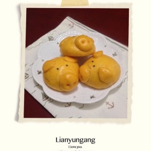 用湿筷子捅两鼻孔,萌萌的小猪做好了,可爱吧!依次做好所有的小猪。