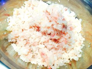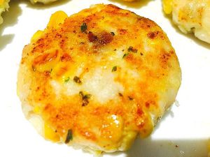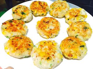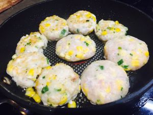 在攪拌盆裡加入調味料和生粉,拌勻。加入薑茸、蔥花和萬歲粟米粒,拌勻。用手將魚肉按成4厘米厚的魚餅。中火燒熱鑊,加入萬歲粟米油。分批將魚餅雙面煎至金黃色,約4-5分鐘。取出放在廚房紙巾上瀝乾多餘油分,即成。