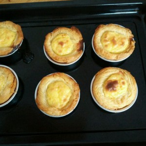将冷藏面团分成均匀的12份,(可以借助称)放入挞模,用手挤压成型。预热烤箱,上下管180℃。倒入挞液,不要太满,7分差不多了