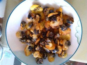 知了弄成这样,用水洗净,用盐腌几分钟,洗净晾干以免油炸时爆油。如没时间晾干就放锅里烘干下,油爆到真的很痛。