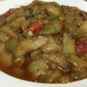 茄子下锅煸炒,刚下锅,茄丁会迅速把油吸吸收,等煸软后,油又会从茄丁中析出哦。