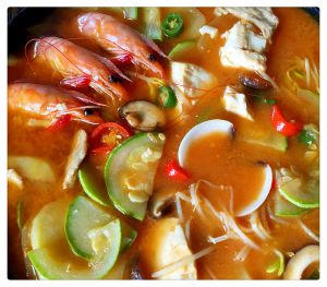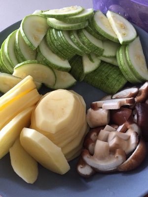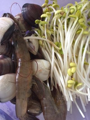 肥牛(我用猪肉的)跟洋葱炒一会儿捞出,第二遍的淘米水入锅,大酱、韩式辣酱自己看着放吧,水开先放土豆豆芽、2分钟后放西葫芦、豆腐、菇类;水再开放花蛤、虾,最后放炒好的肉和洋葱、加青红辣椒蒜瓣1分钟,加点盐。哎哟我也是蛮懒的…