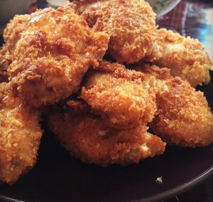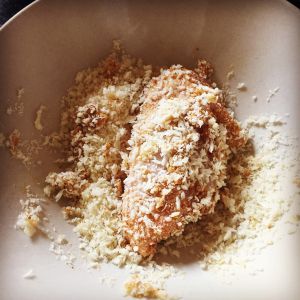 鸡蛋打散,鸡翅裹上炸鸡粉,再放入蛋清里,再在面包糠里走一下,下油锅。