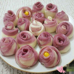 把紫薯泥和面和在一起发酵(发面简单我就不讲了)