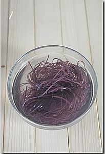 . 焯水后的粉丝用冷水冲降温后,泡入凉开水。