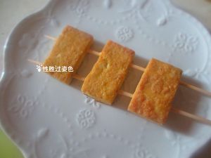 在豆腐串上撒上椒盐粉胡椒粉和花生碎