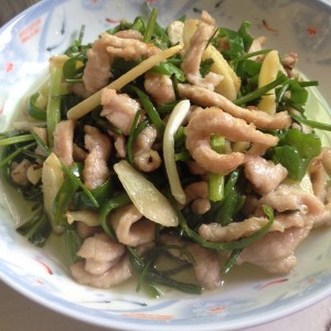 里脊肉切丝,我这个故意切的比较粗,加盐,淀粉调匀备用。我炒的是白肉,如果喜欢上一点色的话,就在肉里再加豆瓣酱,生抽。yekey加点味精
