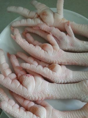 备好鸡爪切斩去爪甲,一个网友告诉我,爪甲刺击身体神经,有害,必须去除!