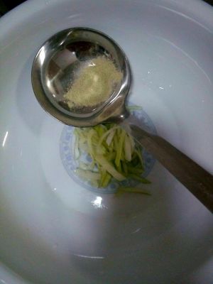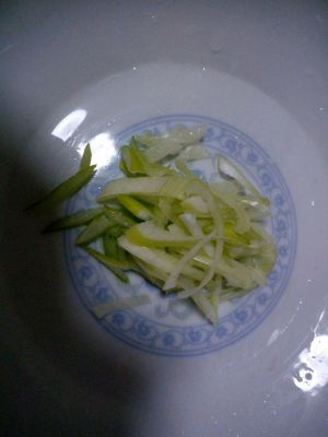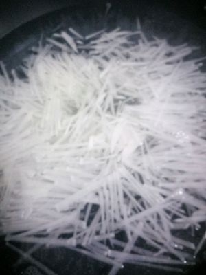清水煮开,加入盐调成适合自己的口味儿,放入萝卜丝。