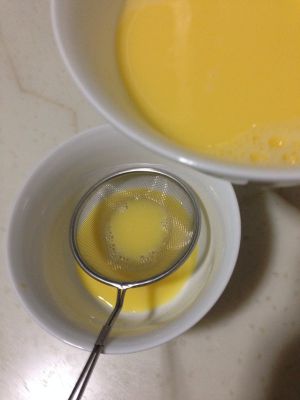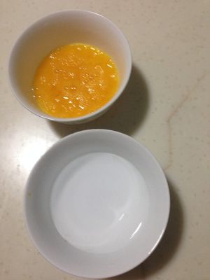 准备另一个碗,倒入与蛋液差不多的凉开水,并且两种液体倒在一起,搅打均匀