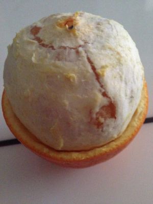 一点点往里剥,直到完全分离,一个橙碗做好了,同样的方法再做另一个