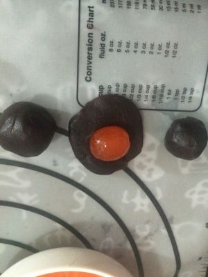 趁松弛面皮的时候,把蛋黄包进豆沙馅,豆沙馅每个25克重,咸蛋黄约15克左右,这样馅差不多40克重。