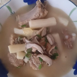 加入水,喜欢喝汤的,水可以多一点,加入料酒,胡椒粉,菌菇,山药切段加入,大火烧开。过程中撇掉表面的浮沫。开锅后继续大火煮3到5分钟,调中小火闷煮半小时左右,根据自己的口味加入食盐,再煮5分钟,这样煮出来的排骨鲜嫩还有嚼头。喜欢烂一点的可以多煮一会再加盐。
