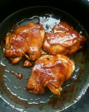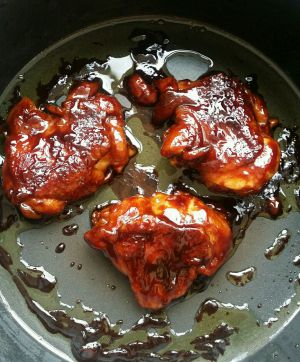 琵琶腿去骨。加生姜,料酒,蚝油,老抽腌制片刻后皮朝下,用小火煎