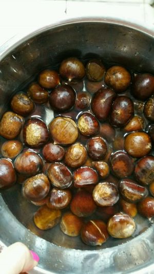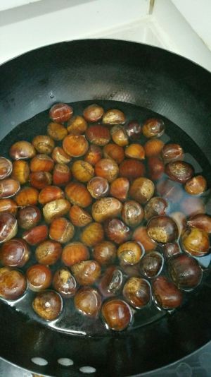 浸泡好的板栗连同糖水倒入锅中煮15分钟!