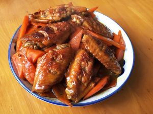 锅里放少许油,又热放蒜瓣,炒香后放胡萝卜,翻炒后放适量盐,倒入鸡翅中继续翻炒一会,放末过鸡翅中水,放入一块咖喱小火炖到浓稠,可以出锅了!