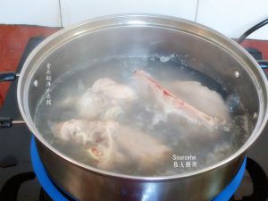 猪骨洗干净,放入锅中煮沸,去腥,捞出滤干水待用;