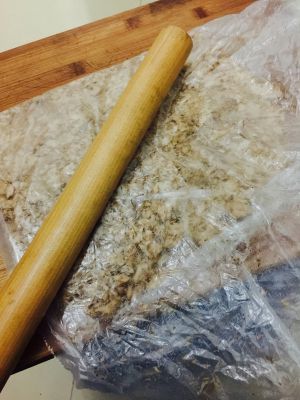 装入保鲜袋用擀面杖敲打打透了取出放入炒锅翻炒
