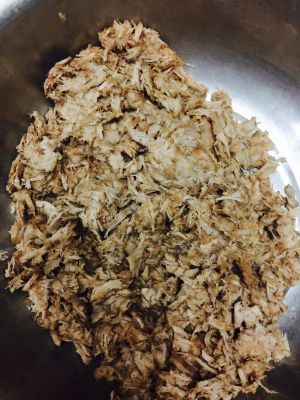 不断翻炒至颜色变深变松放凉、可撒些芝麻炒凉了就可以装入玻璃瓶随吃随取