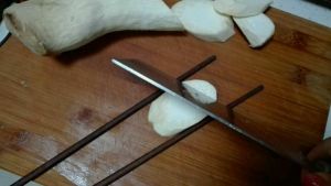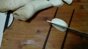 杏鲍菇洗净切斜片,两三片,比家里筷子厚