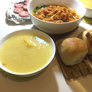 配上金灿灿的玉米红薯粥,和烤黄金馒头,完美的四金杂粮晚餐上桌啦☺️