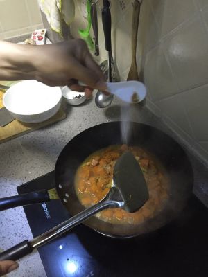 焖好的南瓜加盐,鸡精,南德调味料少许
