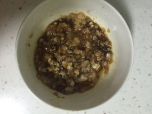 肉末里加入酱油和香油 拌匀 这样做出来很香哦