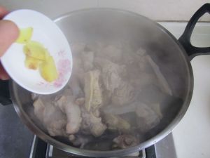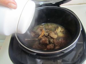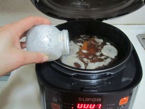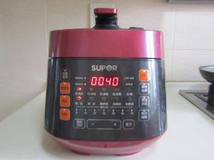 盖好高压锅,选择好原材料,按下炖汤的功能键, 40分钟;