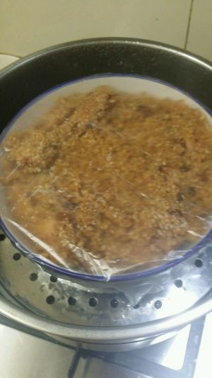 把弄好的米粉跟腌制好的肉,拌在一起,搅拌过程中加水,加水量,让米粉跟肉都黏黏的寒假就行了。