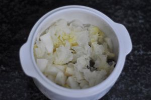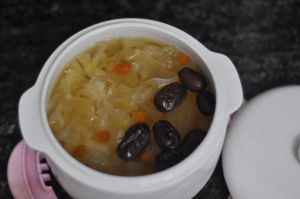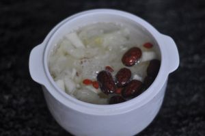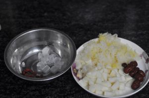 雪梨去皮切小块,银耳泡发洗净撕小朵备用